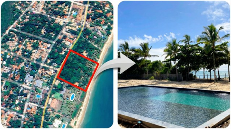 Restinga foi totalmente arrancada para abrir espaço para cadeiras e guarda-sóis Um novo empreendimento em construção na Estrada da Balsa, em Arraial d’Ajuda, tem gerado forte preocupação ambiental e jurídica. No...