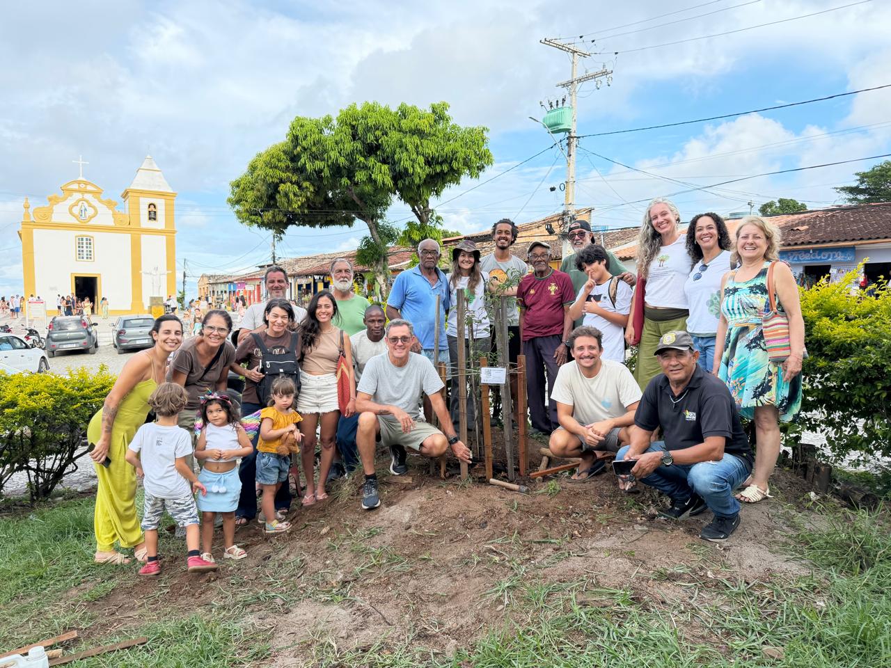 Comunidade do Arraial d’Ajuda planta muda de tamarindeiro histórico na Praça da Igreja