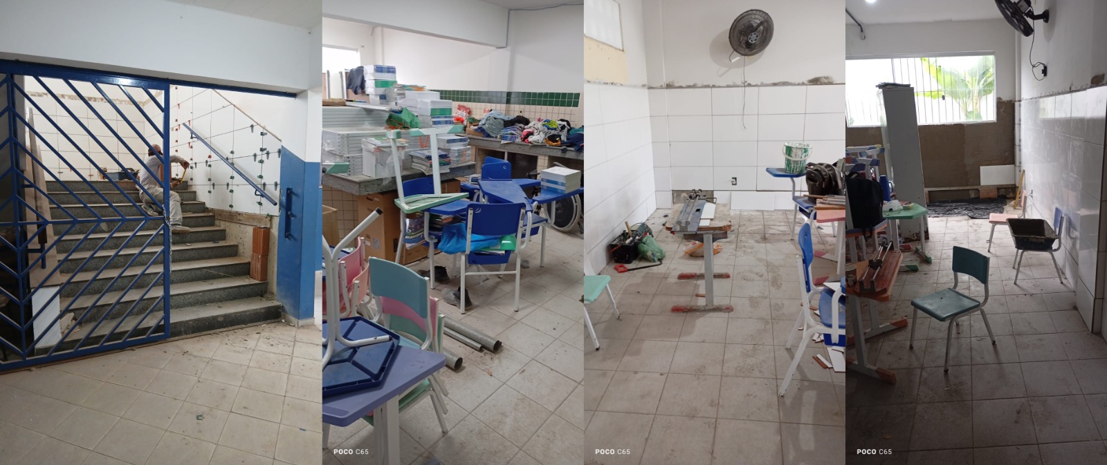 A mesma situação de falta de planejamento é verificada na Escola Cantinho da Paz, localizada no bairro Frei Calixto. No local, os profissionais da educação se apresentaram para o início das atividades, porém não encontraram condições adequadas de trabalho em razão das obras e da estrutura comprometida, o que evidencia mais um episódio de desorganização administrativa.