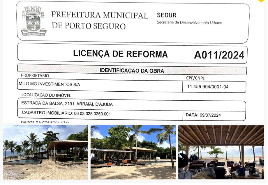 Em Arraial d’Ajuda, a denúncia de Prosdocimi em redes sociais tornou-se um caso formal. O Instituto do Patrimônio Histórico e Artístico Nacional (IPHAN) confirmou a irregularidade da obra à reportagem. Estimativas do mercado imobiliário local indicam que o valor do terreno, de aproximadamente 6 mil metros quadrados, algo como um campo de futebol, pode variar entre R$ 15 a 25 milhões, mas o valor oficial do terreno não pôde ser confirmado.