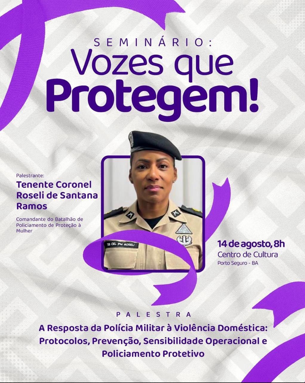 Contudo, a história também é feita de resistências. As lutas feministas, os coletivos de mulheres e o empenho de setores comprometidos têm arrancado conquistas, ainda que insuficientes diante da dimensão do problema. Um exemplo desse esforço é a criação do Batalhão de Policiamento de Proteção à Mulher, sob o comando da tenente-coronel Roseli de Santana Ramos, que foi palestrante no seminário “Vozes que Protegem!”, realizado nesta quinta-feira, dia 14 de agosto, no Centro de Cultura de Porto Seguro. O Batalhão reforça a ideia de que a proteção das mulheres exige mais do que repressão: demanda escuta, acolhimento e redes de cuidado. É o segundo do tipo no Brasil, sediado em Salvador, mas com atuação em todo o Estado, o que sinaliza uma tentativa de resposta institucional ao cenário de violência.