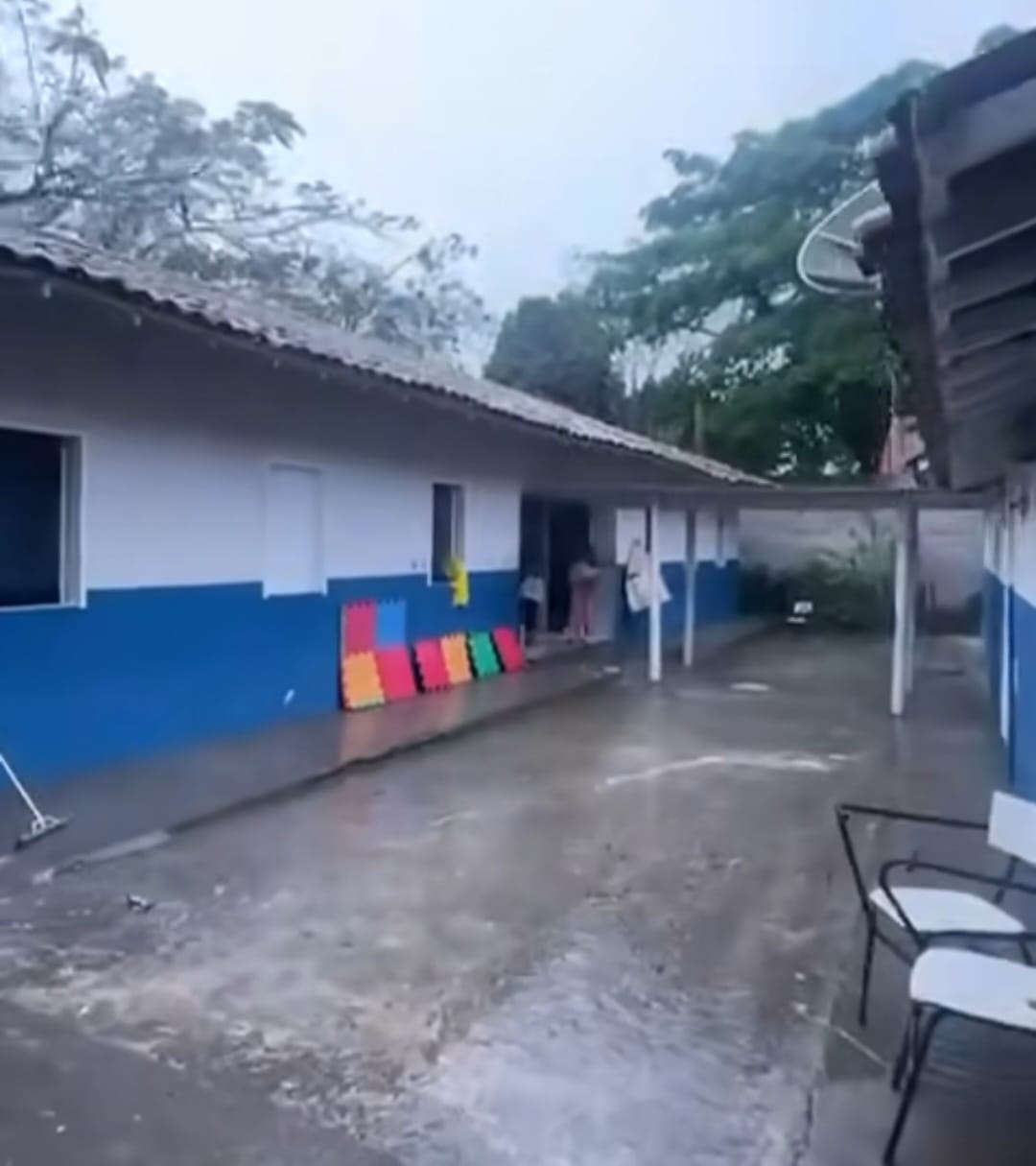 Na Escola Higina Cristo, localizada no Quadrado de Trancoso, professores e direção precisaram realizar, por conta própria, a limpeza do local para uma reunião no sábado, dia 25 de outubro. O pátio, as salas de aula e até a secretaria foram tomados pela sujeira levada pela enxurrada, sem que houvesse qualquer apoio de equipe técnica ou especializada.