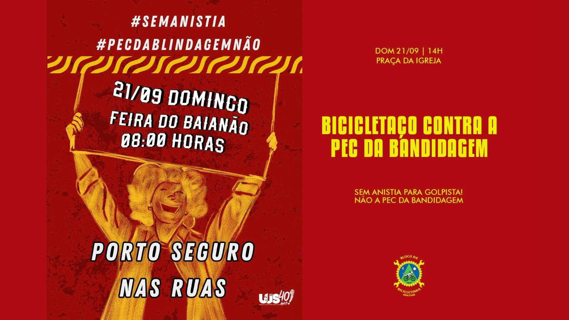 Partidos, movimentos sociais e cidadãos de Porto Seguro estão convocando a população para dois atos públicos contra a chamada "PEC da Bandidagem", aprovada na Câmara Federal, e contra a proposta de anistia para envolvidos nos atos golpistas.