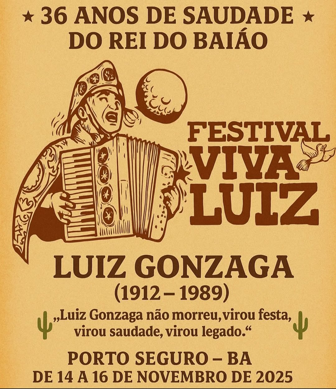 O Festival Viva Luiz está chegando pra fazer todo mundo forrozear na cidade histórica de Porto Seguro do dia 14 a 16 de novembro de 2025. As atrações já confirmadas são: FORRÓ LASCADO, ÍTALO COSTA, FORROFIÁ e TIZIU DO ARARIPE…